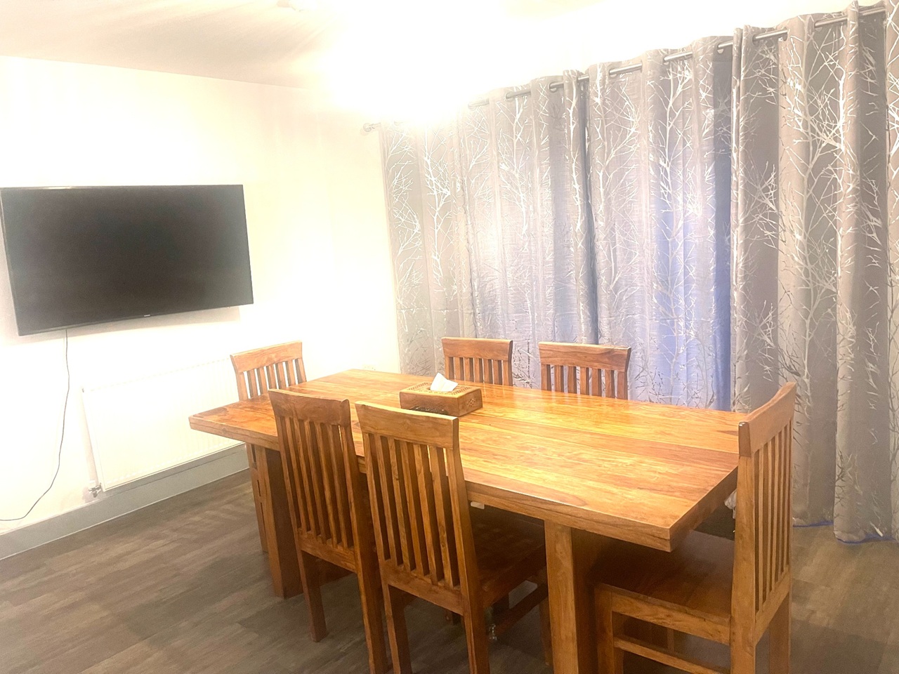 · 52” smart TV in shared dining/living room