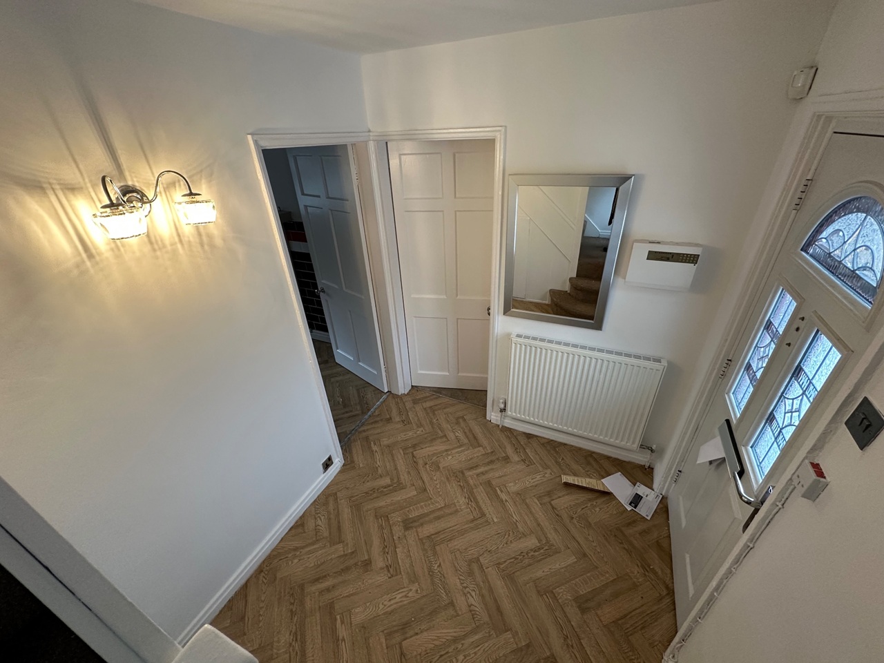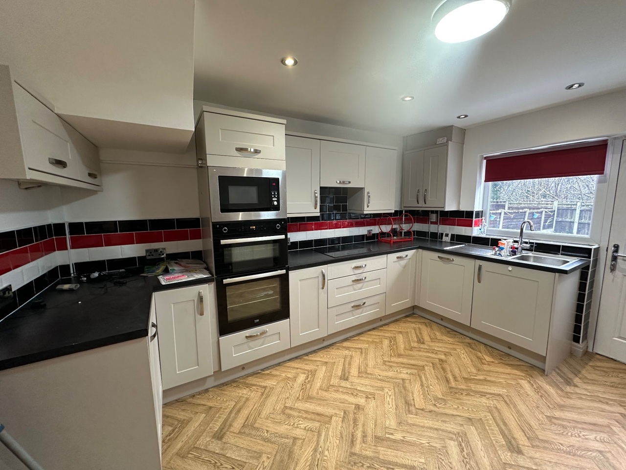 Spacious entrance hallway, leading to lounge/living room, kitchen inc oven/hob and built in dishwasher, back door leading to garden area.