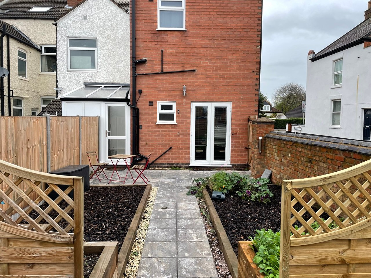 The rear garden area provides a relaxing area, and a private drive-way for 2 cars for the use of house residents.