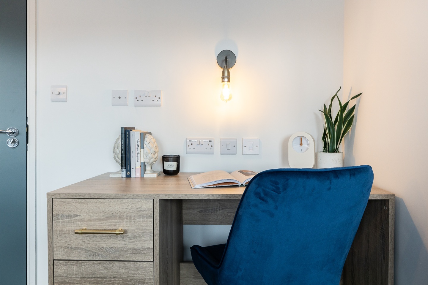 • Desk and Office Chair, with superfast Virgin 800mbs Wi-Fi direct access provided in your room and wireless boosters across the house.