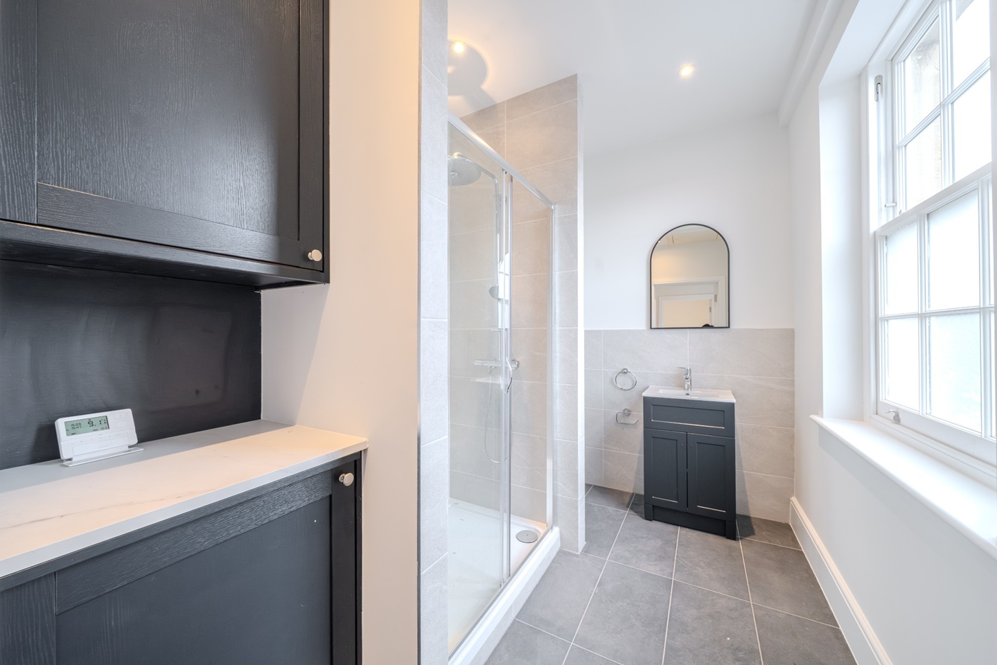 Throughout the apartment, modern finishes sit seamlessly alongside the character of the listed building, with upgraded electrics, efficient heating, crisp white walls and quality joinery throughout.