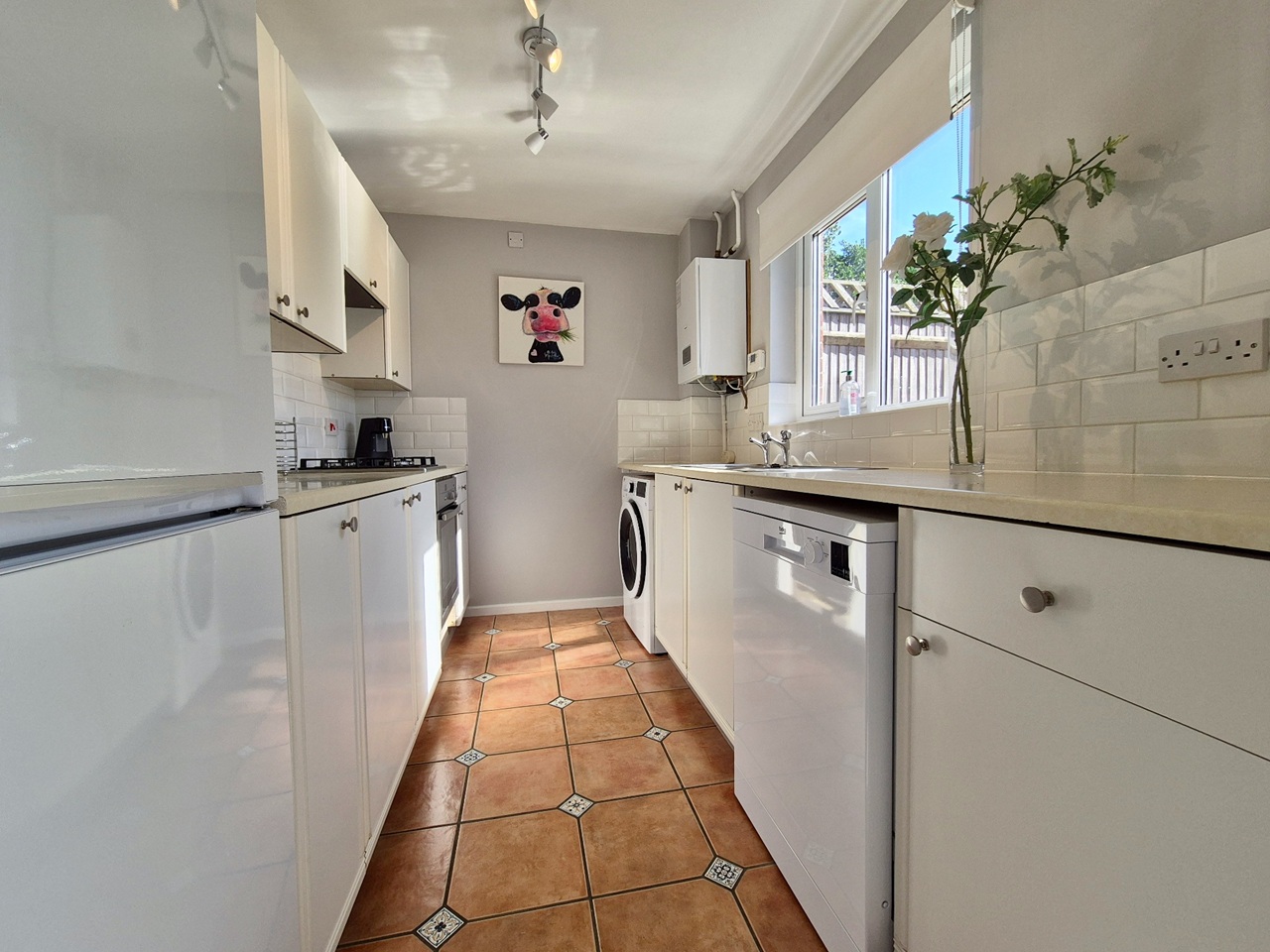 KITCHEN 10’0” x 6’4” (3.05m x 1.93m) Fitted with a range of eye level and base units, gas hob, electric oven, dishwasher, washer-dryer, fridge-freezer. Appliances included.