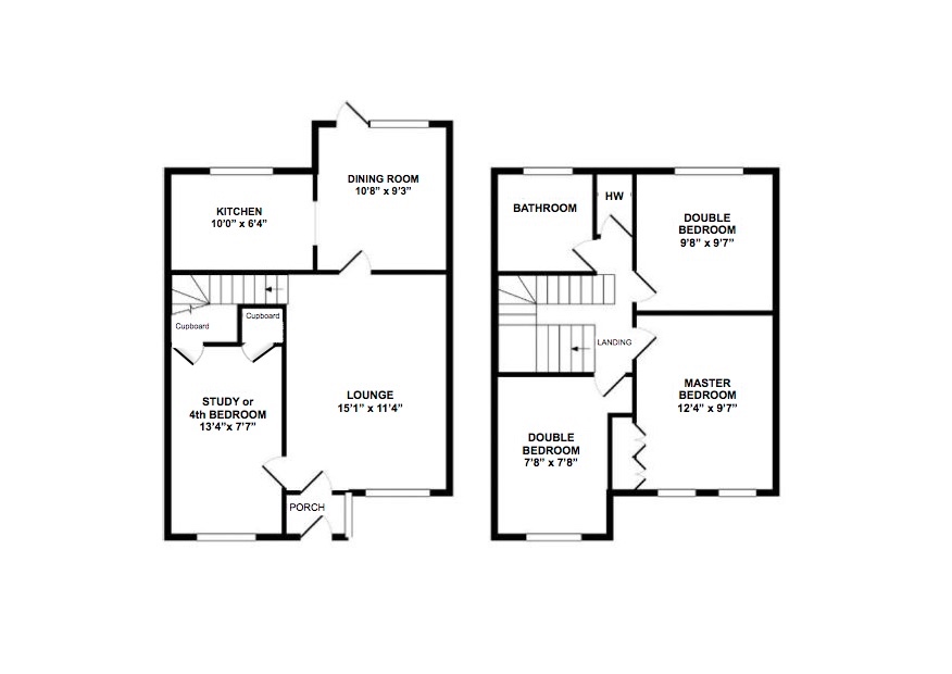BEDROOM THREE 11’0” narrowing to 7’8” x 7’8” (3.35m to 2.34 x 2.34m) Double bedroom.