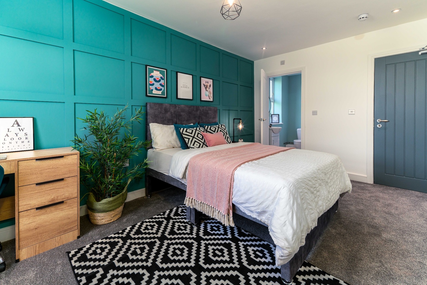 A bright, stylish space with a double bed, wardrobe, desk, and bedside table - everything you need to move straight in.