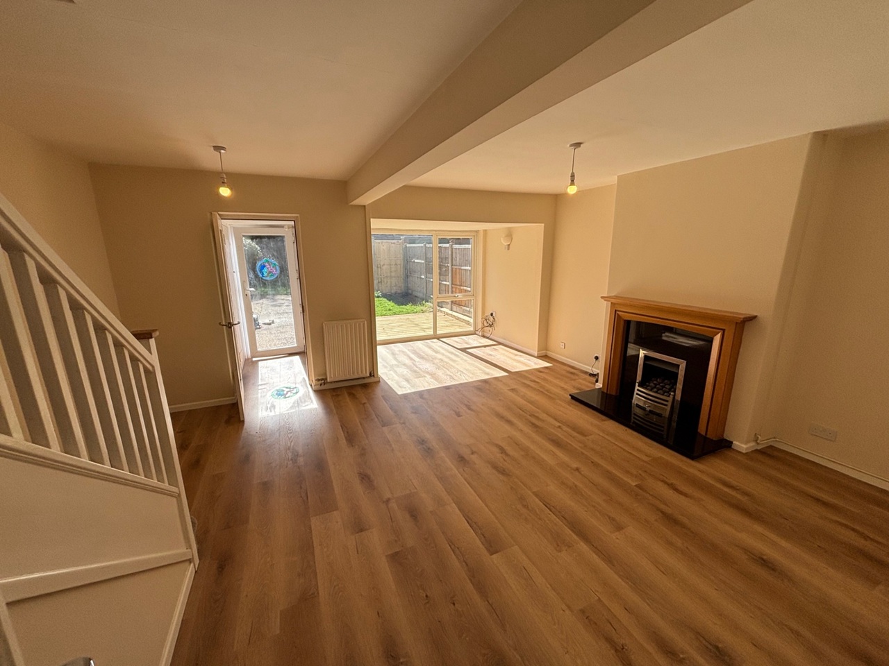 At the rear of the property is a generous garden, mainly lawned, complete with new decking area and garage en-block. The property was also reroofed in February 2025 with additional insulation added to the loft.