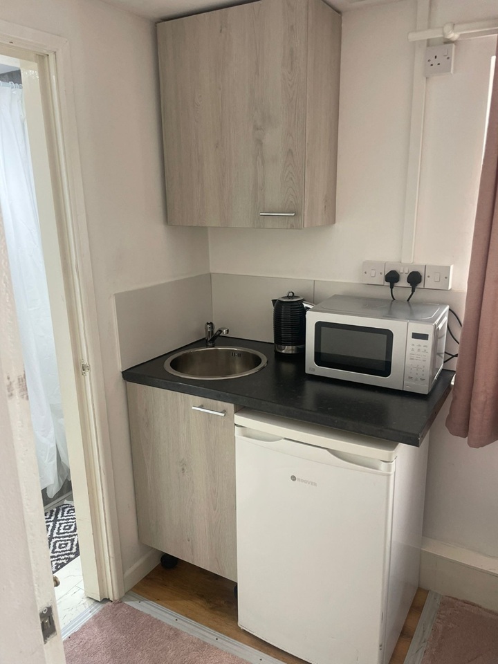 Kitchenette (fridge, microwave, kettle, units & sink)