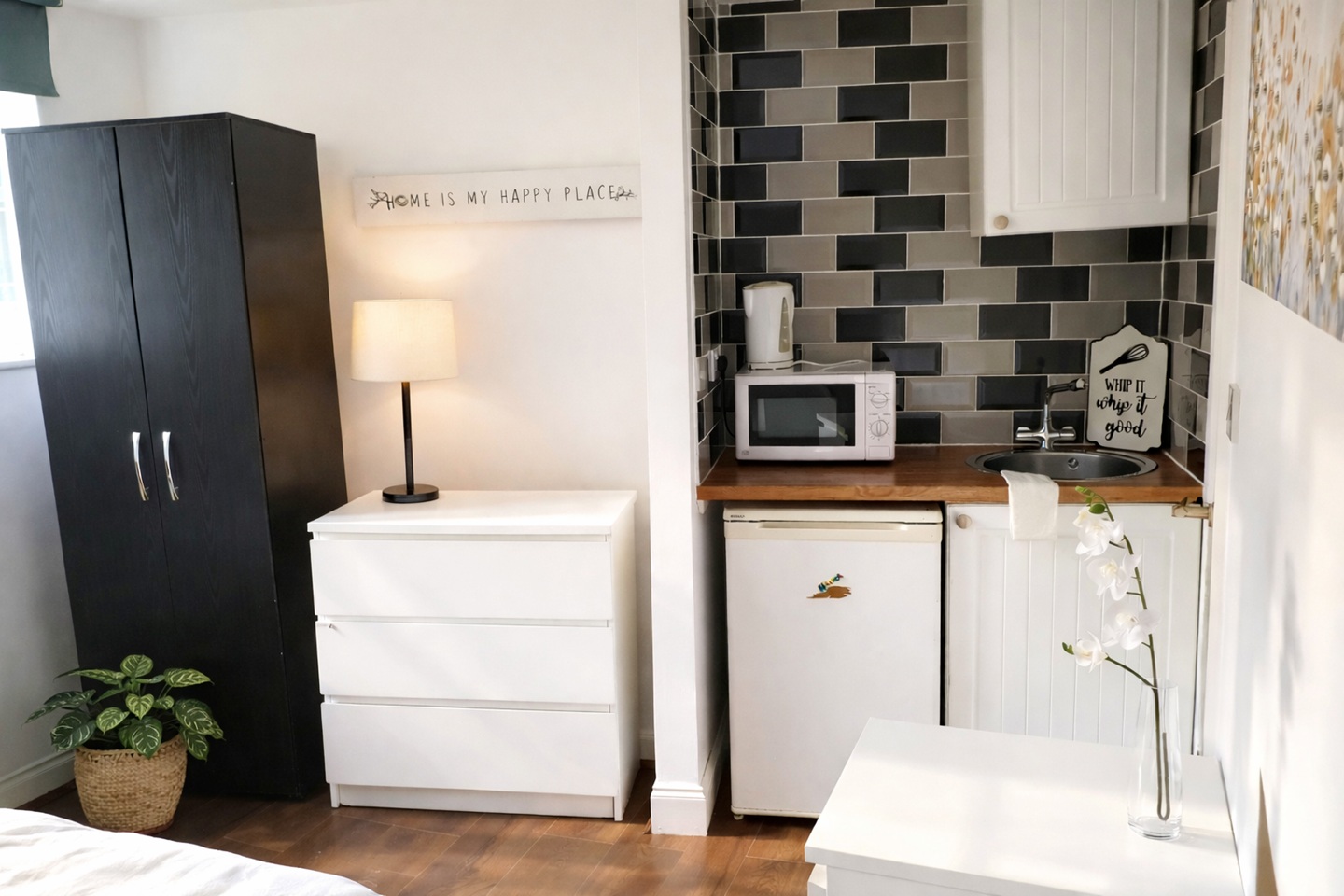 Modern fitted kitchenette with: