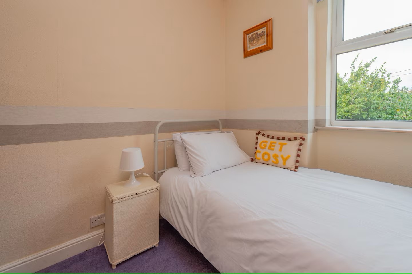 Inside, the home is a fully equipped kitchen that includes everything you need to prepare meals, from a hob and oven to a microwave, fridge-freezer, kettle and toaster. The living area offers a cosy space to relax and unwind. The rear garden is fully fenced and secure, ideal for outdoor dining or simply enjoying the fresh air. Free on-street parking is available directly outside the property.