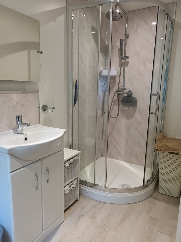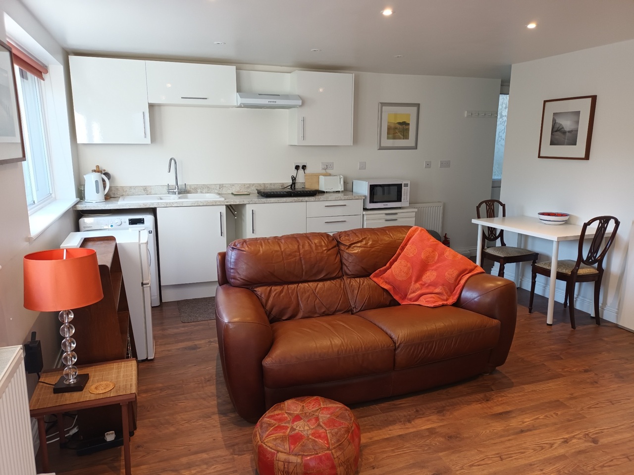 The annex has a large bright open plan living room with equipped kitchen, a bedroom with double bed and memory foam mattress, smart TV, WI-FI, a modern shower bathroom and comfortably furnished.