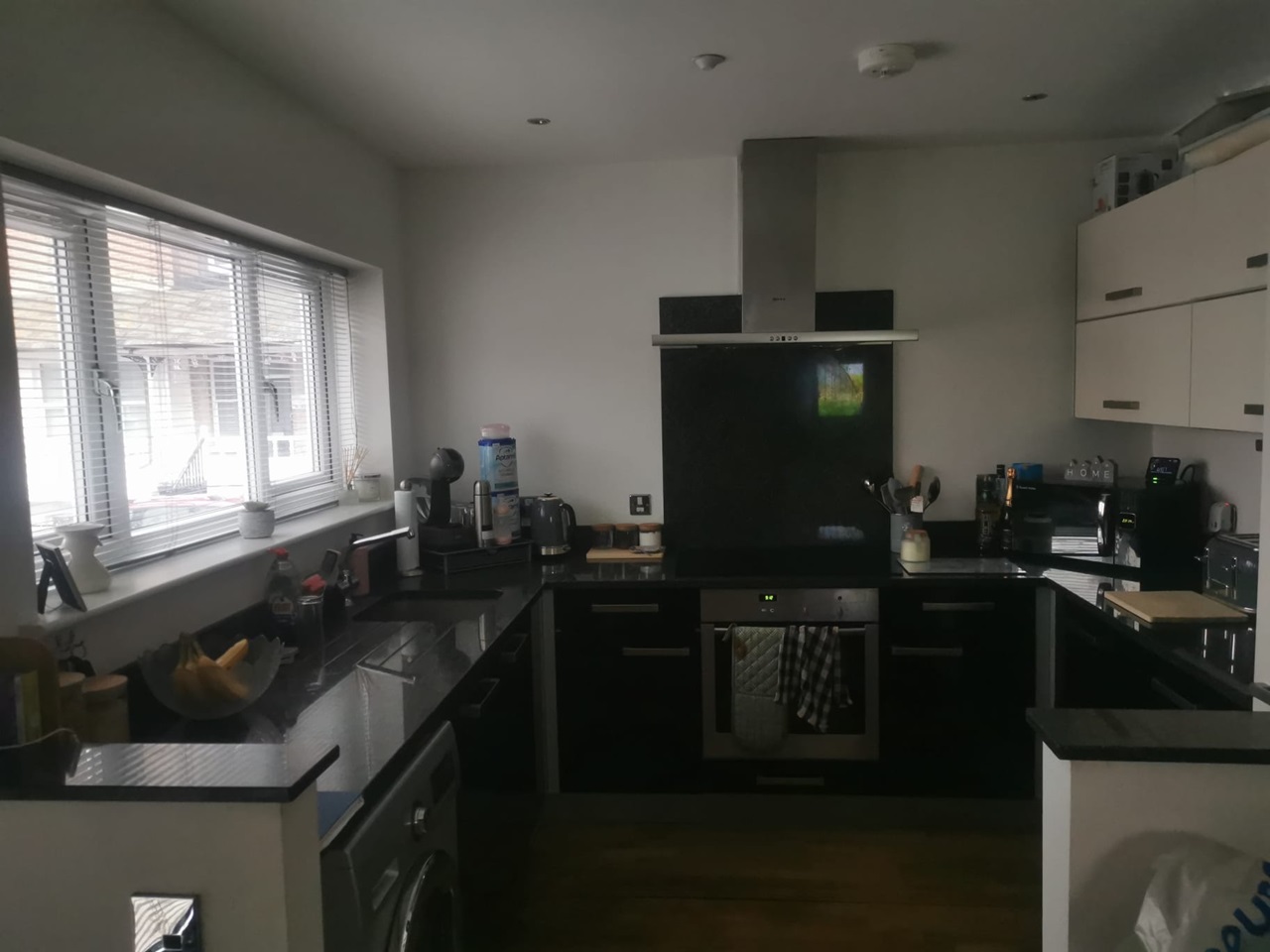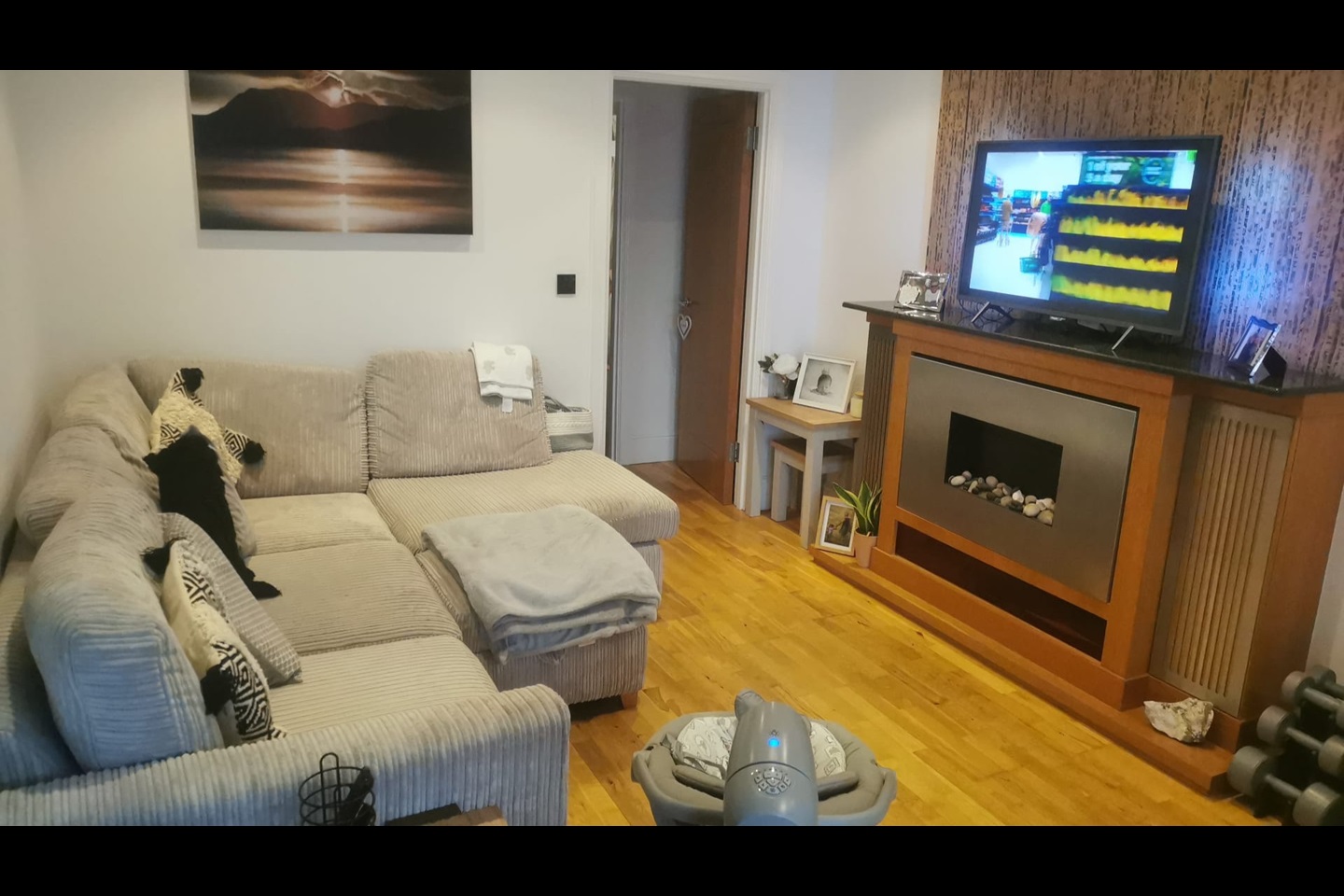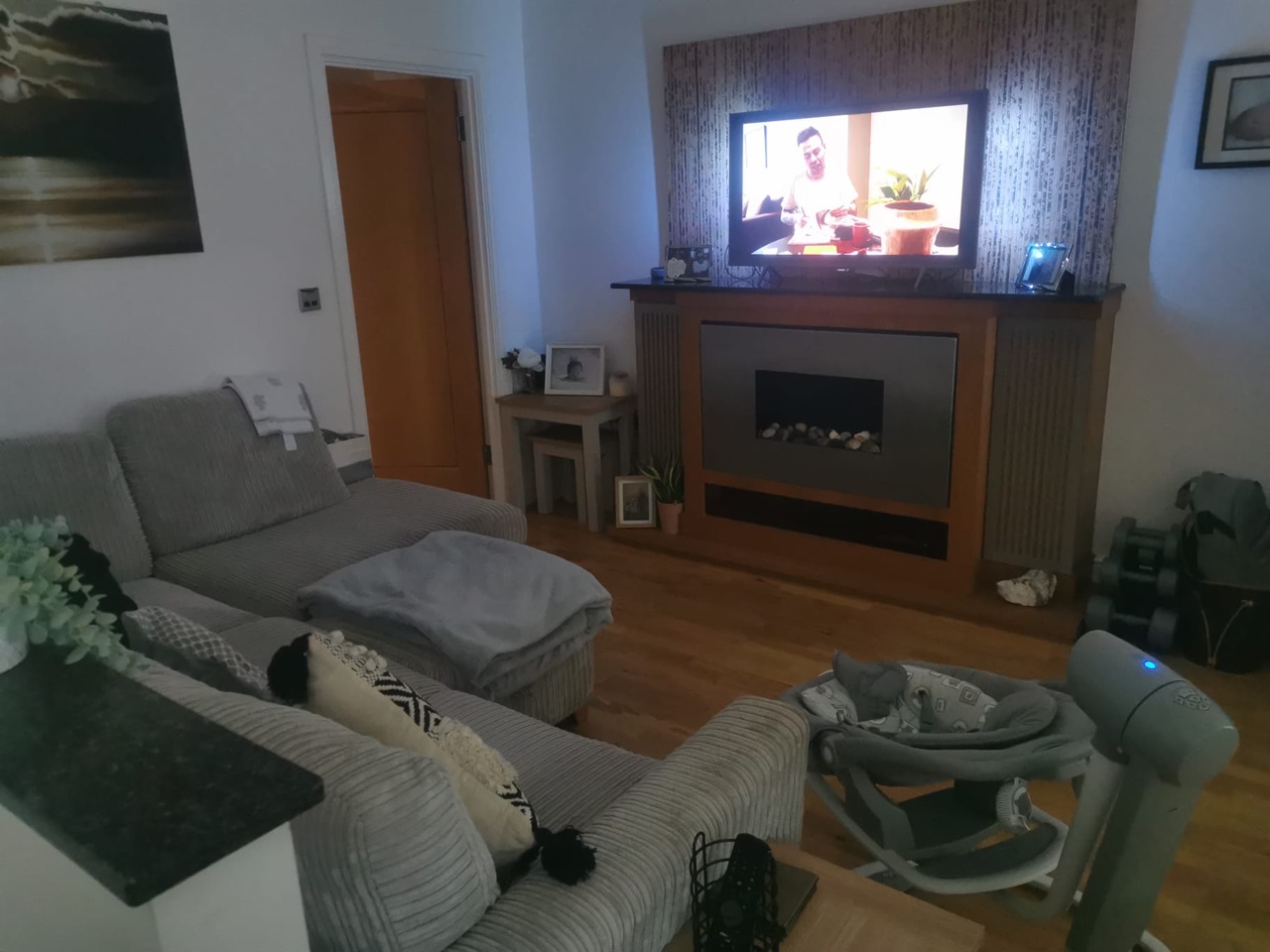 Wooden flooring in lounge kitchen and hallway. Bedrooms are carpeted and bathroom is tiled flooring.