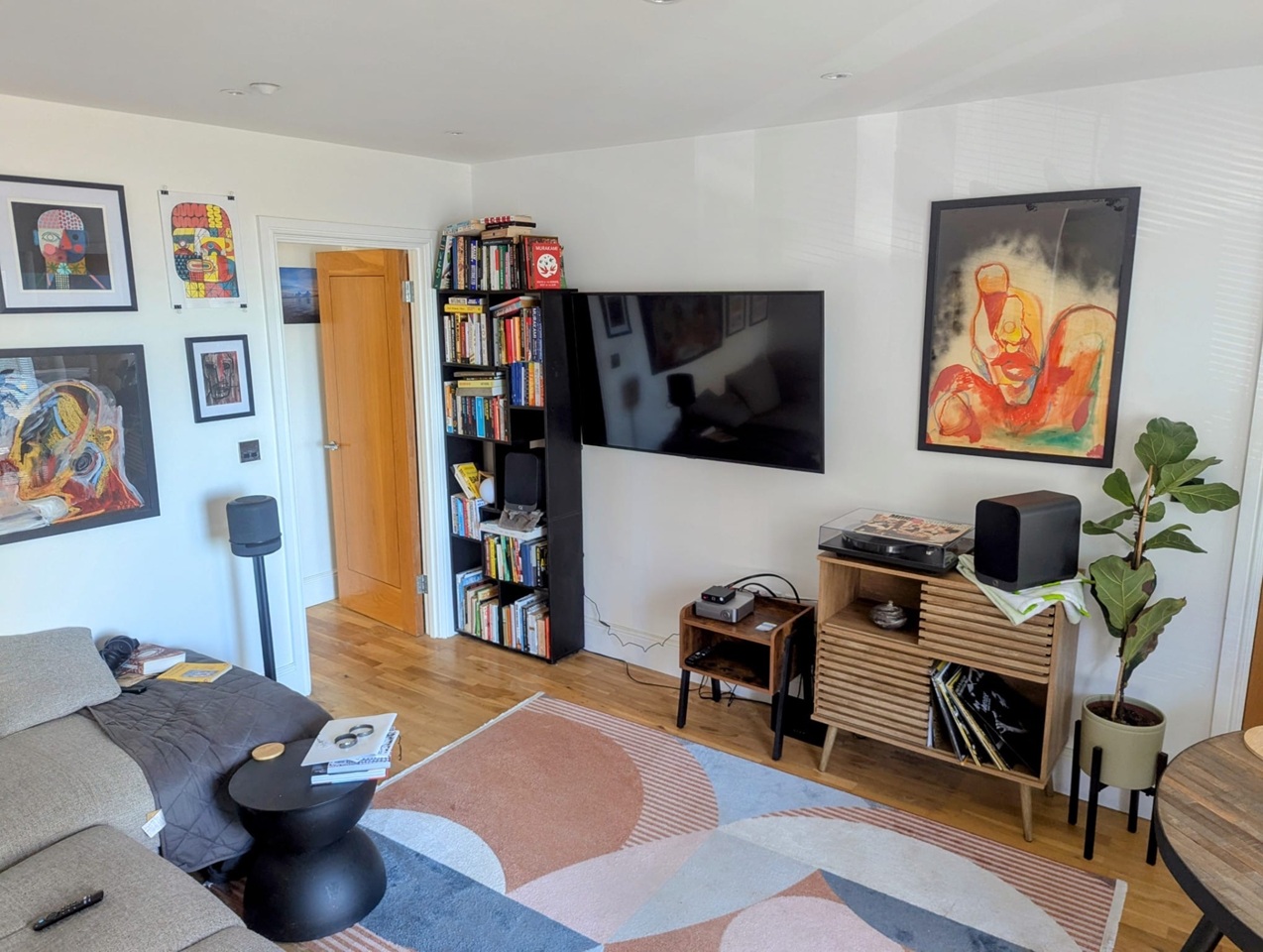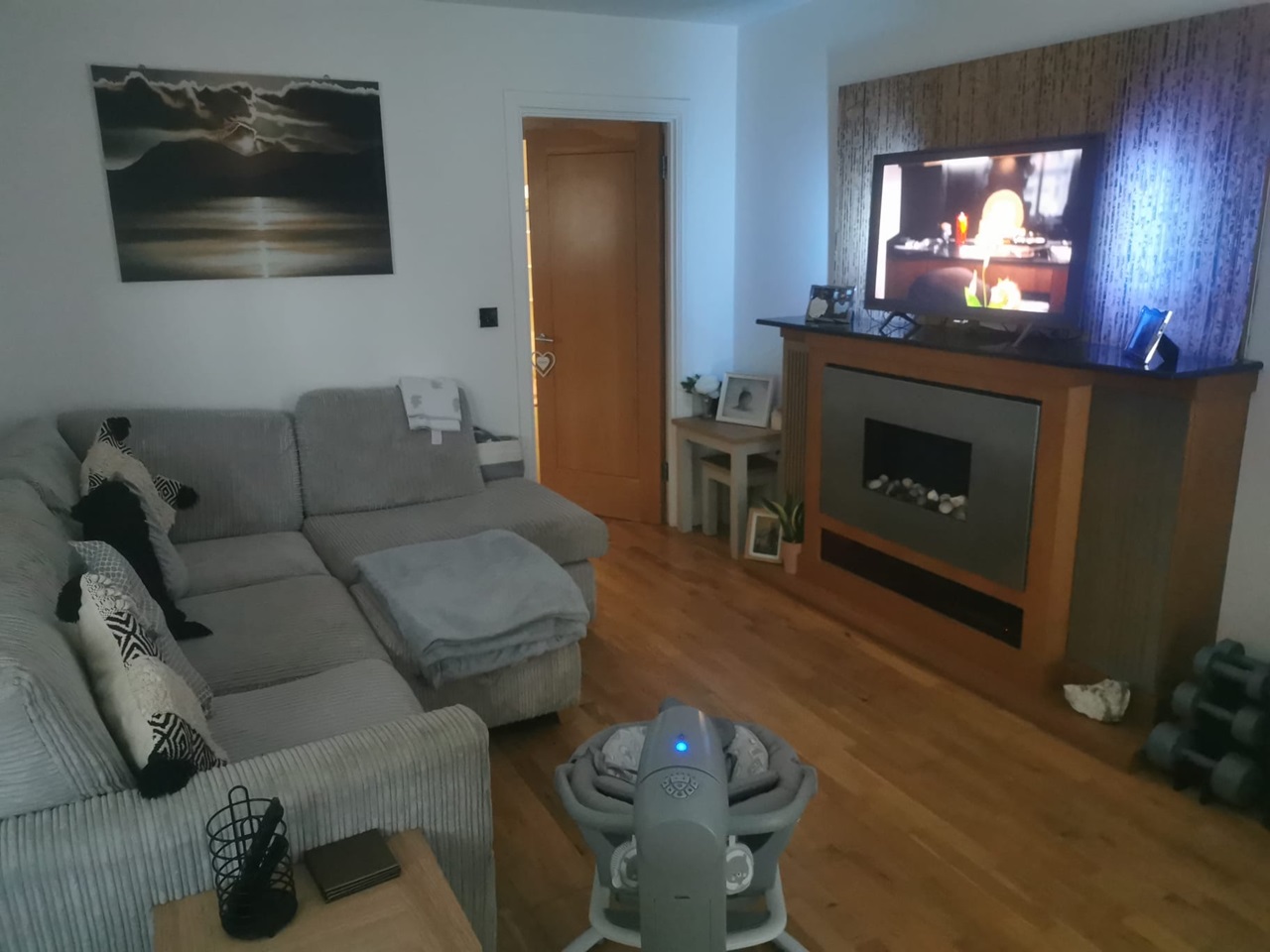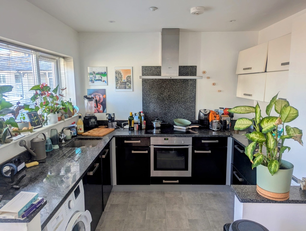 Wooden flooring in lounge kitchen and hallway. Bedrooms are carpeted and bathroom is tiled flooring.