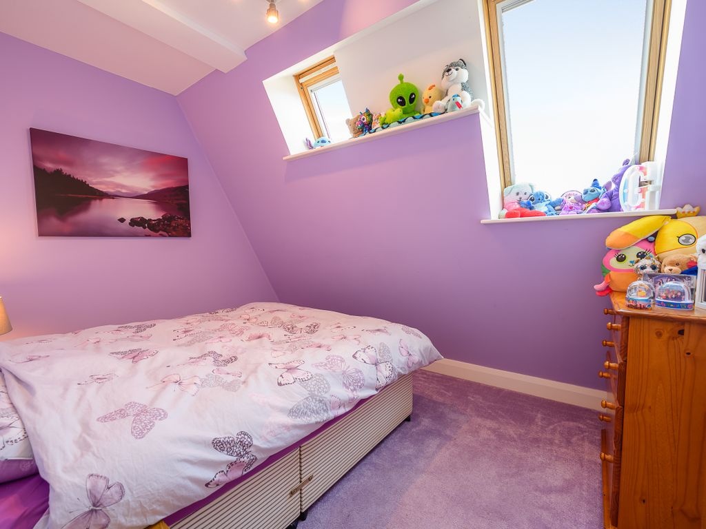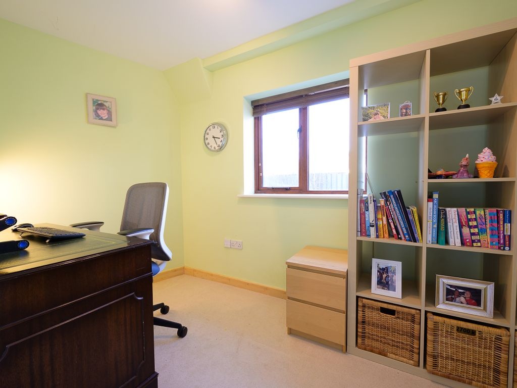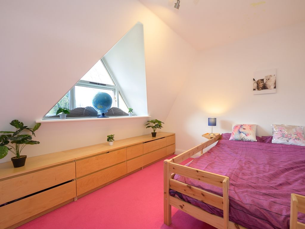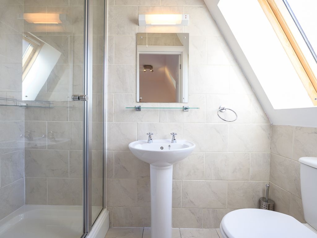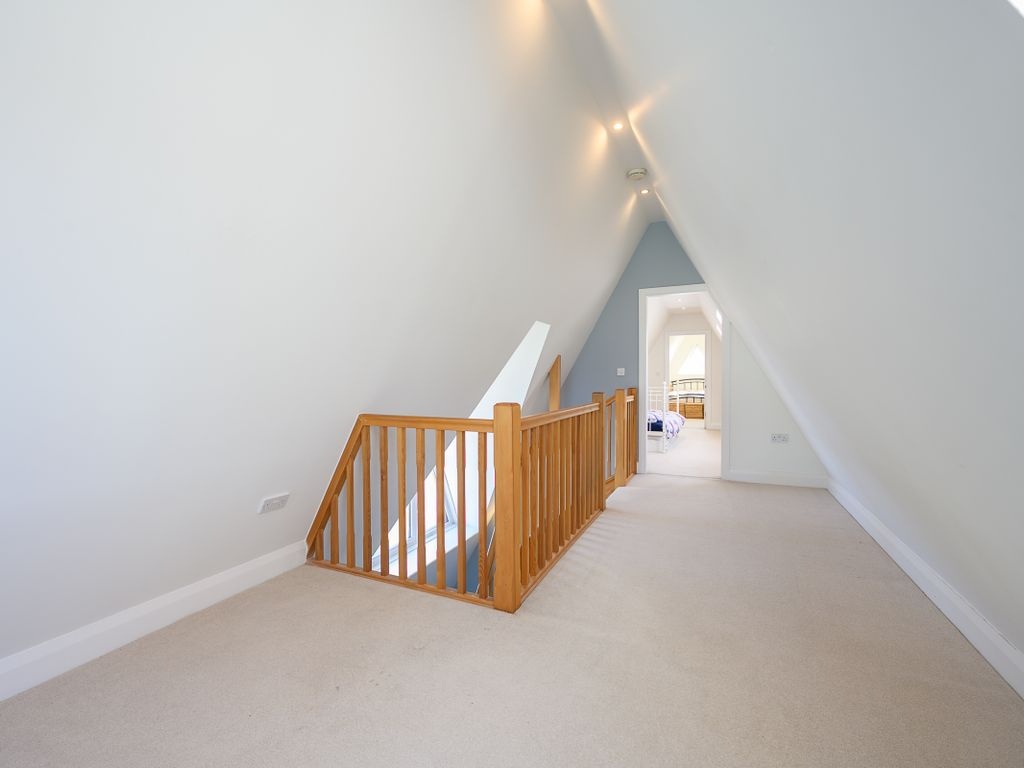 The third bedroom is large enough to accommodate a double bed and includes Velux windows. On this floor, there is the potential for sixth bedroom. One of the rooms is fitted with built-in clothes racks and therefore is used as a walk-in wardrobe but if these were to be removed, there would be space for a single bed or scope for another home office.