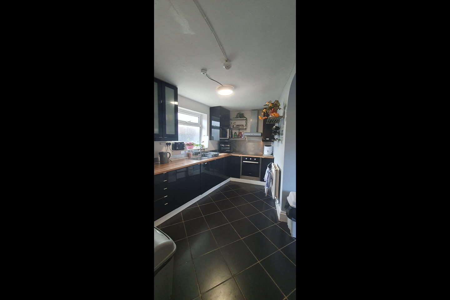 One fridge freezer between two tenants, lots of cupboard space in the kitchen.