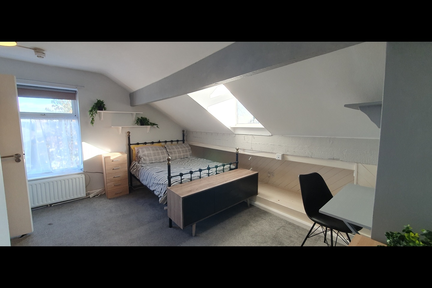 The room is a very large double ensuite located on the attic floor and comes with double wardrobes, a double bed and an orthopaedic mattress.