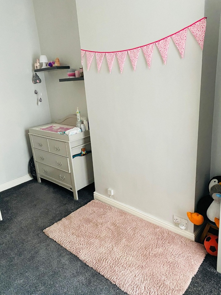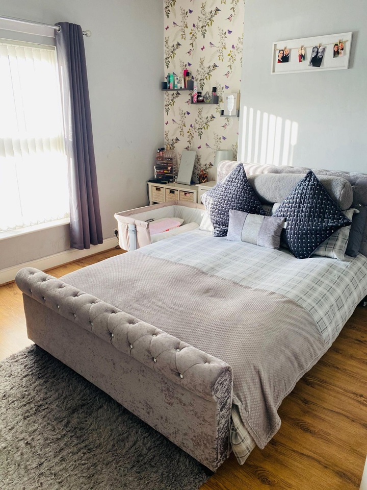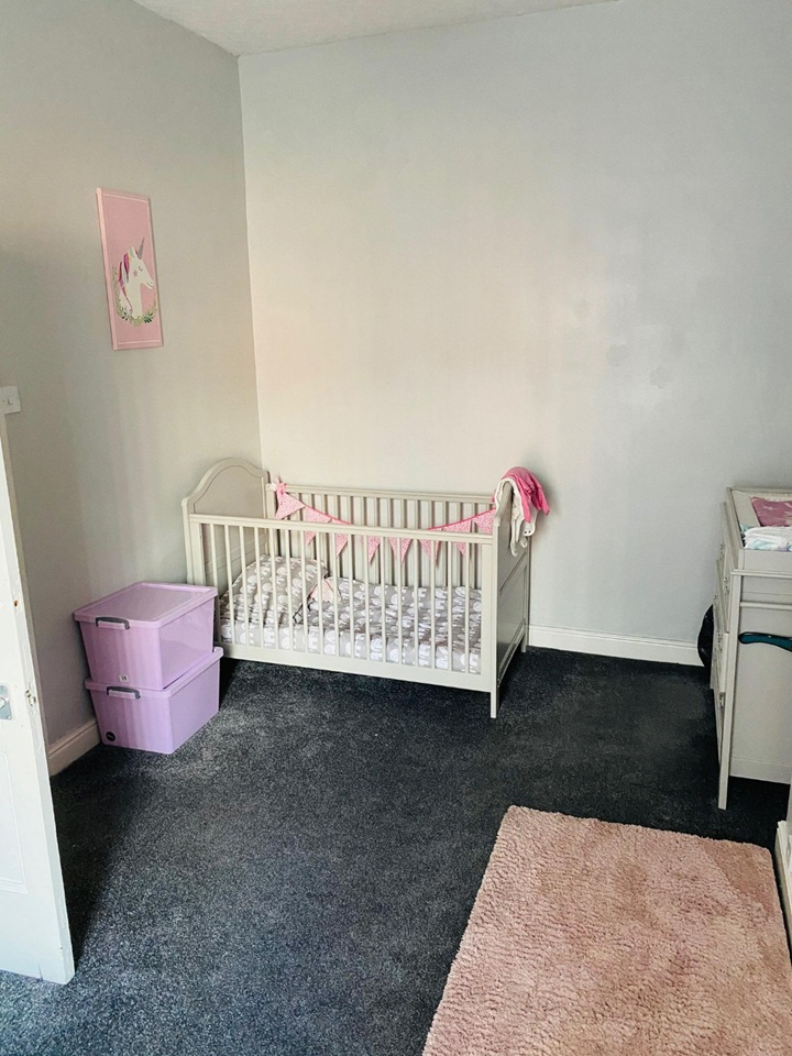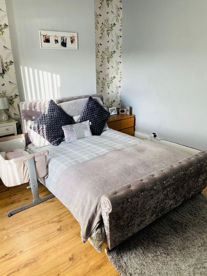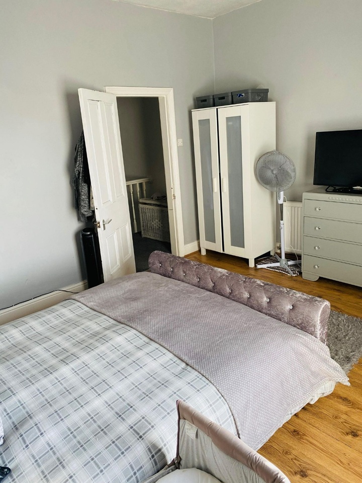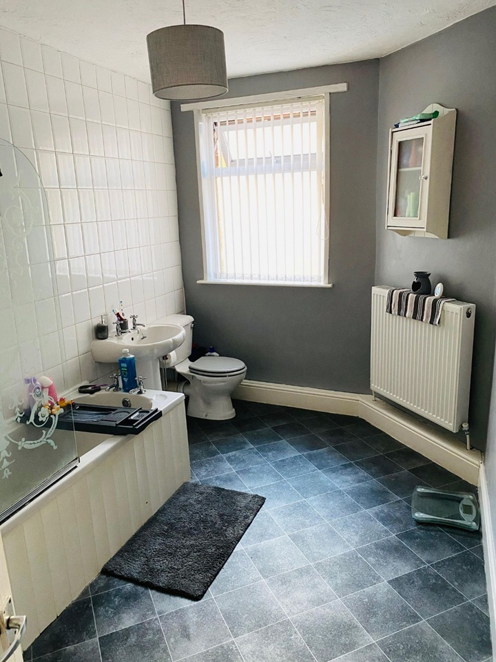 The house offers two generous double bedrooms and a large family bathroom with a bathtub.