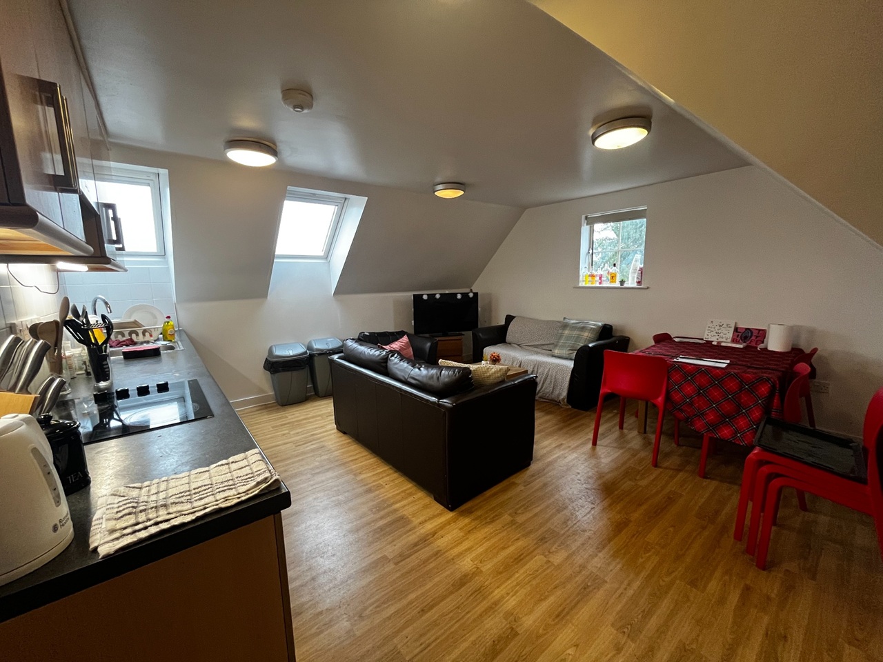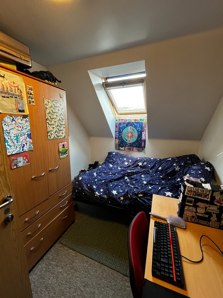 Each room comes furnished with a 4ft double bed, desk and chair, shelving unit, wardrobe, pinboard, and black out blinds.
