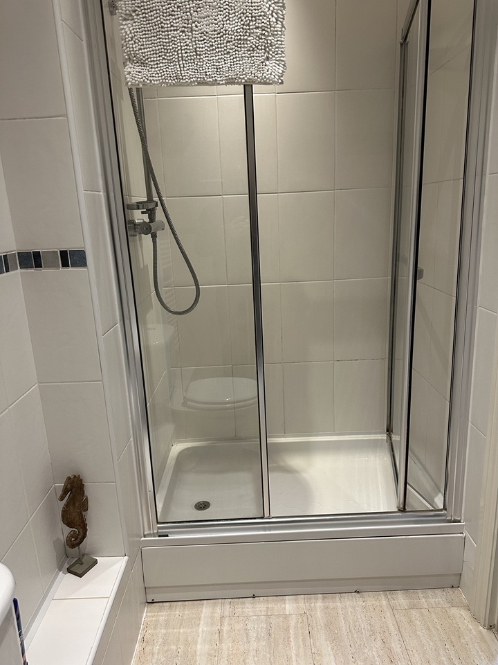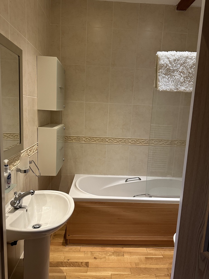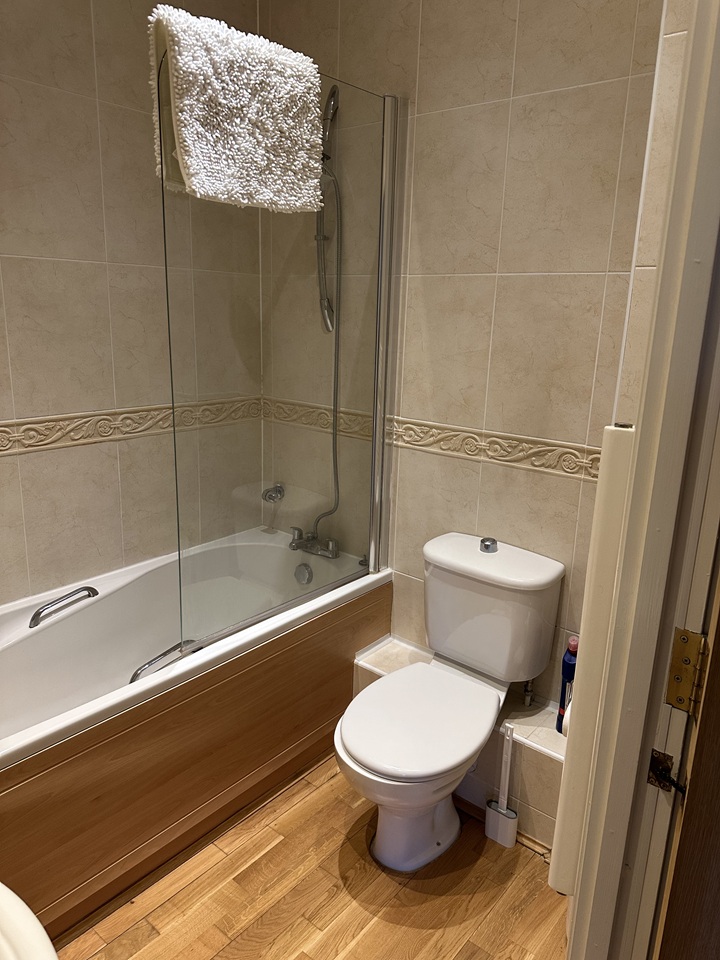 Separate family bathroom with bath and overhead shower