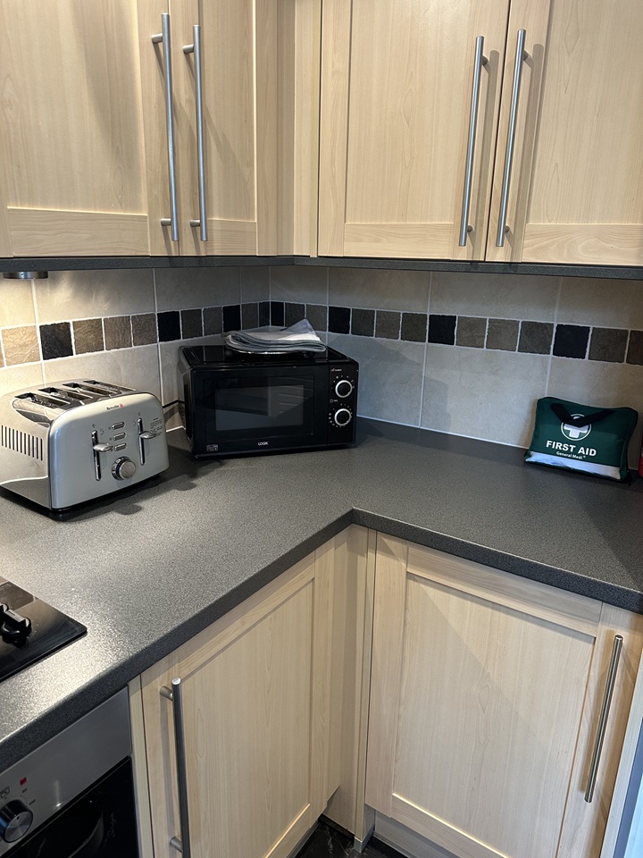 Inside, the property offers a bright and spacious living and dining room, perfect for relaxing or entertaining. The modern kitchen is fully equipped with a fridge-freezer, washing/ Drying Machine, hob, oven, microwave, and kettle.