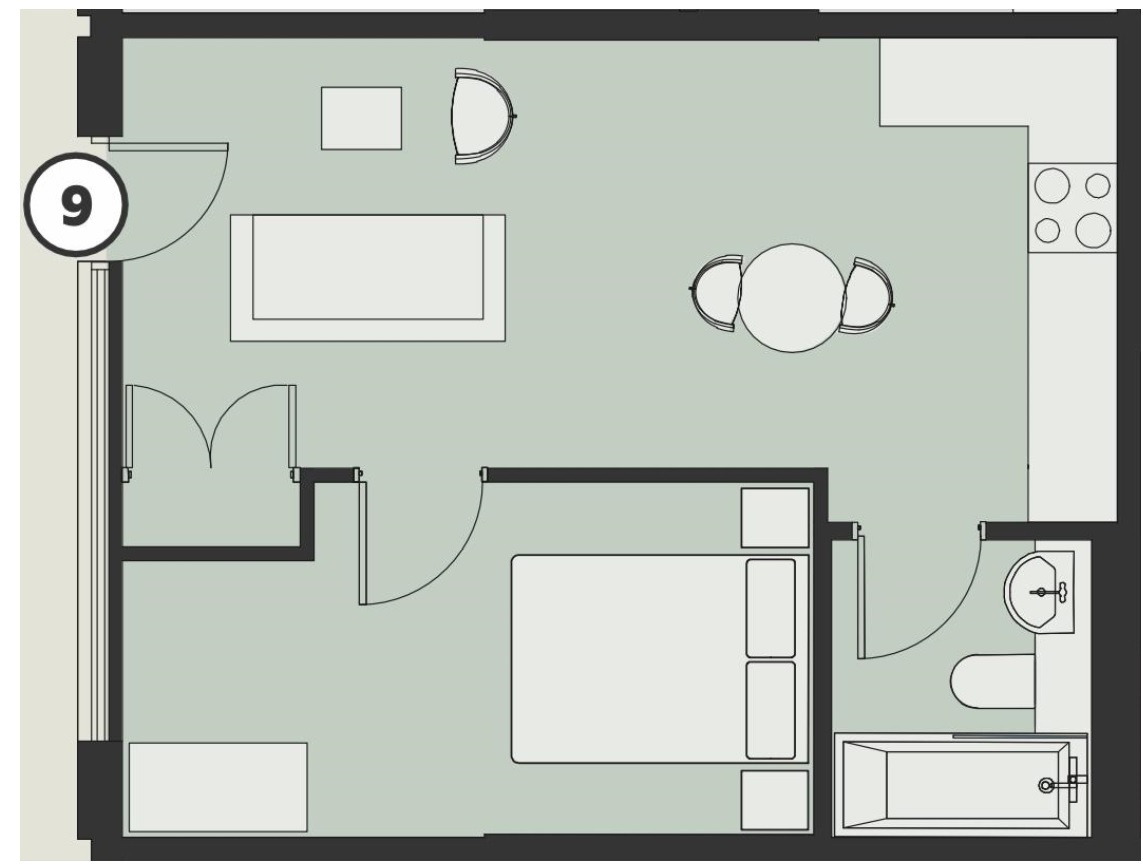- 1 bedrooms
