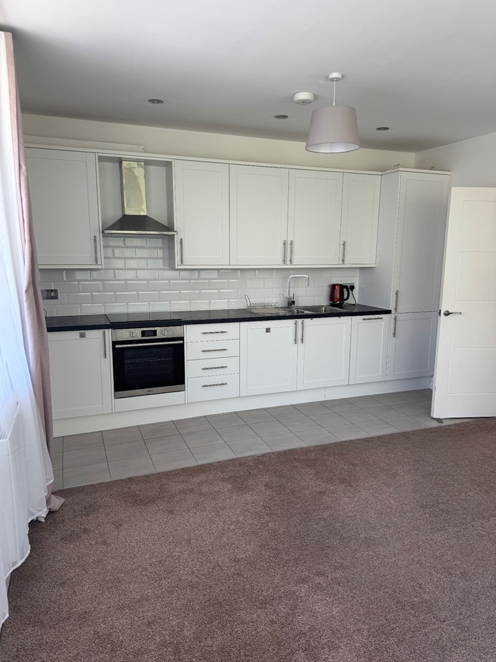This apartment block was built to a high specification in 2015, it has security. The accommodation comprises of an open-plan living area with a modern kitchen with washing machine, oven/hob, fridge/freezer, dishwasher, good size double bedroom, hall, large storage room and a nice modern bathroom. The main feature is the large windows that allow light giving the property a nice feel and character with good views.