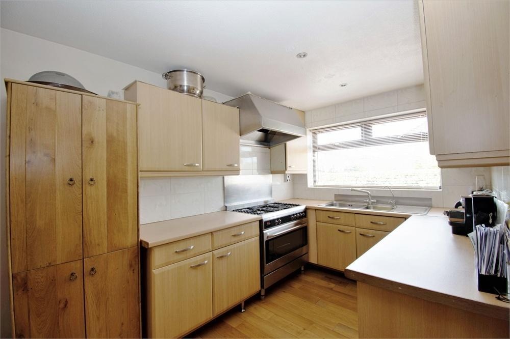 Kitchen - (15'6 x 11') Fitted with a range of wall and base units with space for a cooker, washing machine, dishwasher and fridge freezer. As well as a front aspect window, tiled splashback and space for dining furniture.