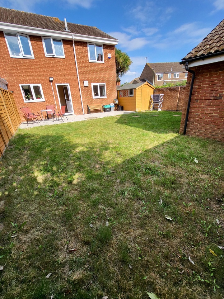 Private Rear Garden: A secluded rear garden with a patio area perfect for outdoor dining and a well-maintained lawn. The garden also includes a timber storage shed and benefits from gated rear access.