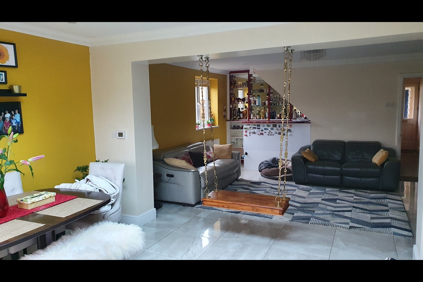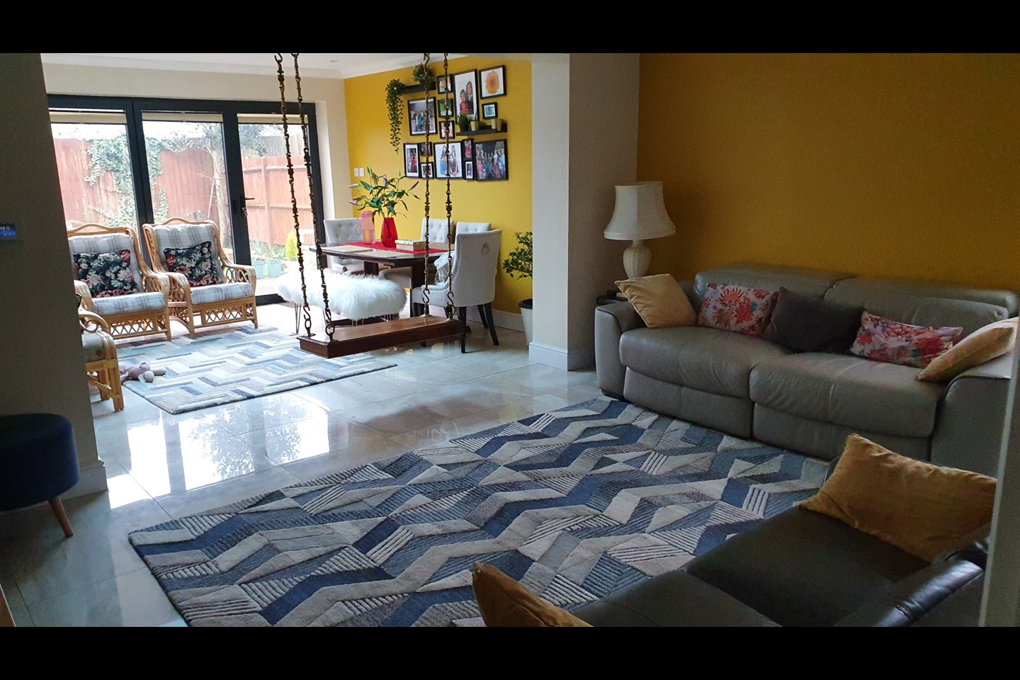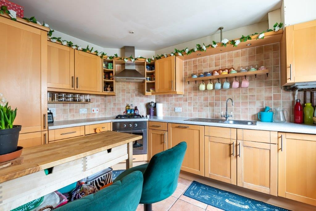 The ground floor offers a modern, fully equipped kitchen and a generous open-plan living and dining area, flooded with natural light and enhanced by bi-fold doors opening onto a private, enclosed garden — ideal for entertaining or relaxed family living.