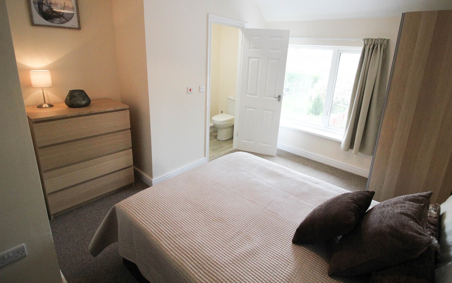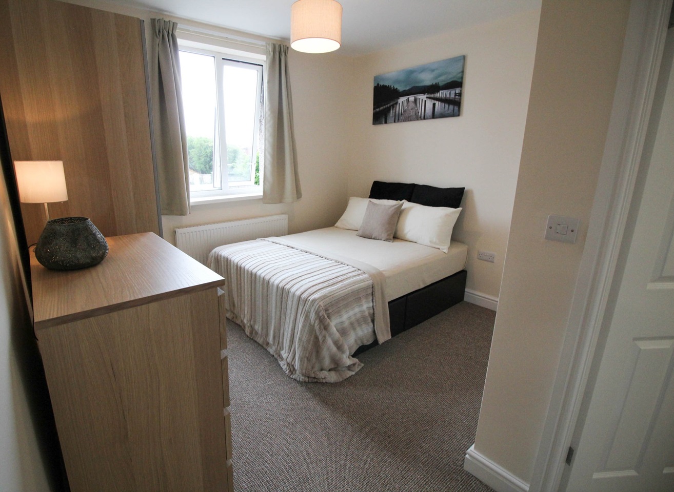 FULLY FURNISHED which includes: Beds, wardrobes, chests of drawers, curtains, carpets, sofas, large TV in main lounge, hoover, iron & ironing board, fridge freezer, washing machine, even down to your pans, crockery, cutlery and glassware! All you need to bring is your bedding!
