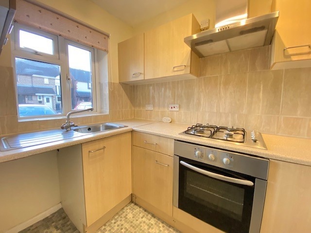 On the ground floor, the property features a downstairs WC and a modern kitchen overlooking the front of the house, complete with hob, oven, and sink.