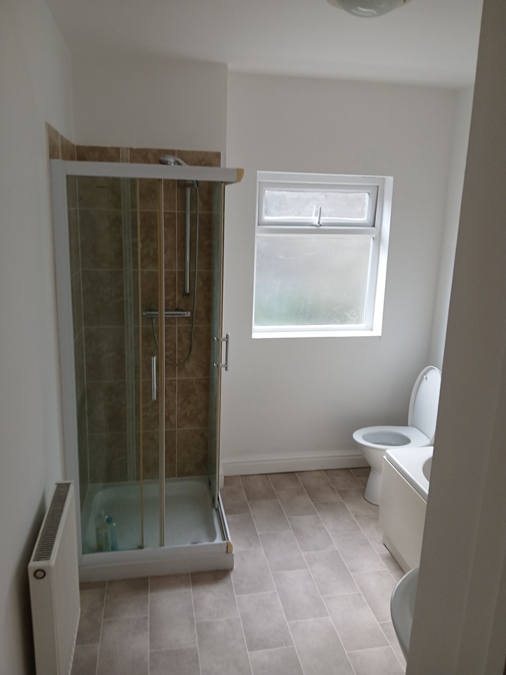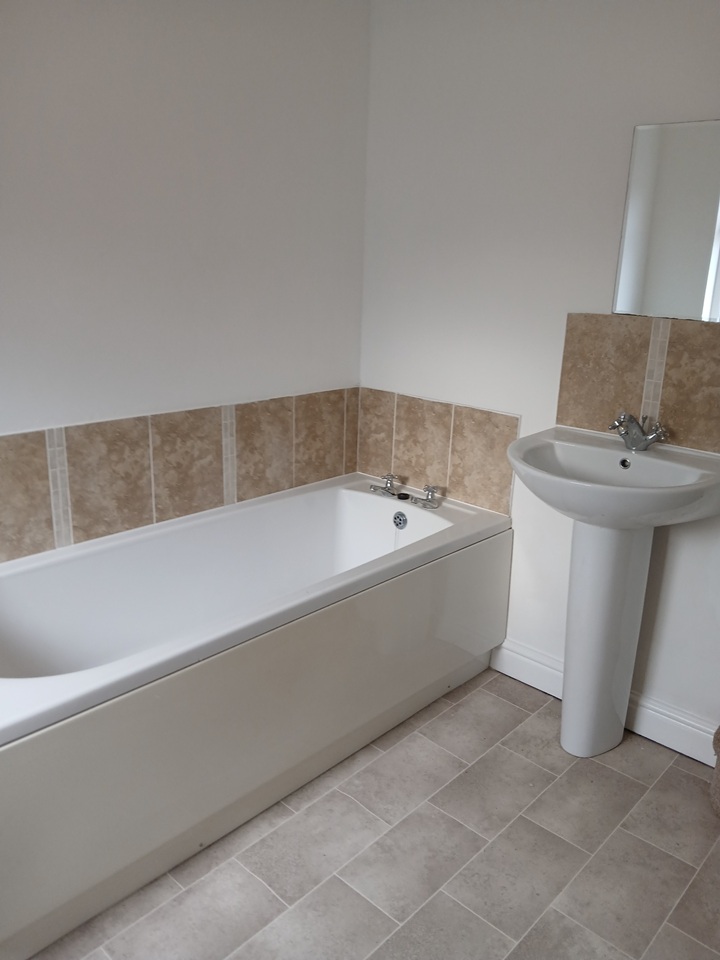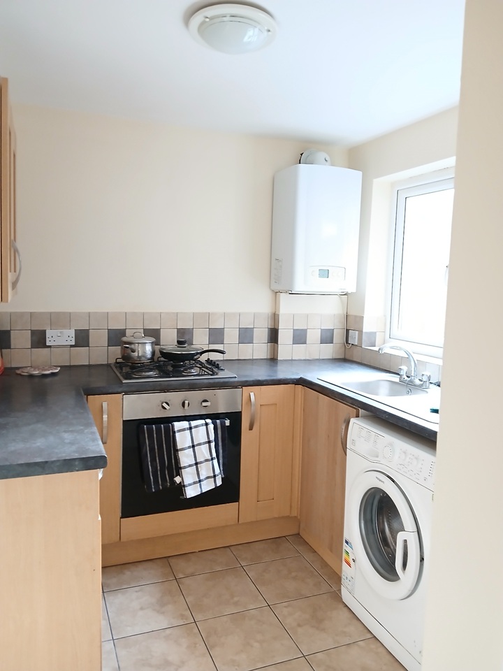 There is a modern kitchen with built in hob and oven. The modern bathroom has a bath and a separate shower cubicle.