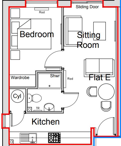 This spacious one-bedroom flat is located on the ground floor of a modern building, offering easy access and convenience. The flat features a large living room, a well-equipped kitchen with essential appliances including a washing machine, oven with hobs, and fridge/freezer. The bedroom is comfortable and the bathroom is fitted with a shower.
